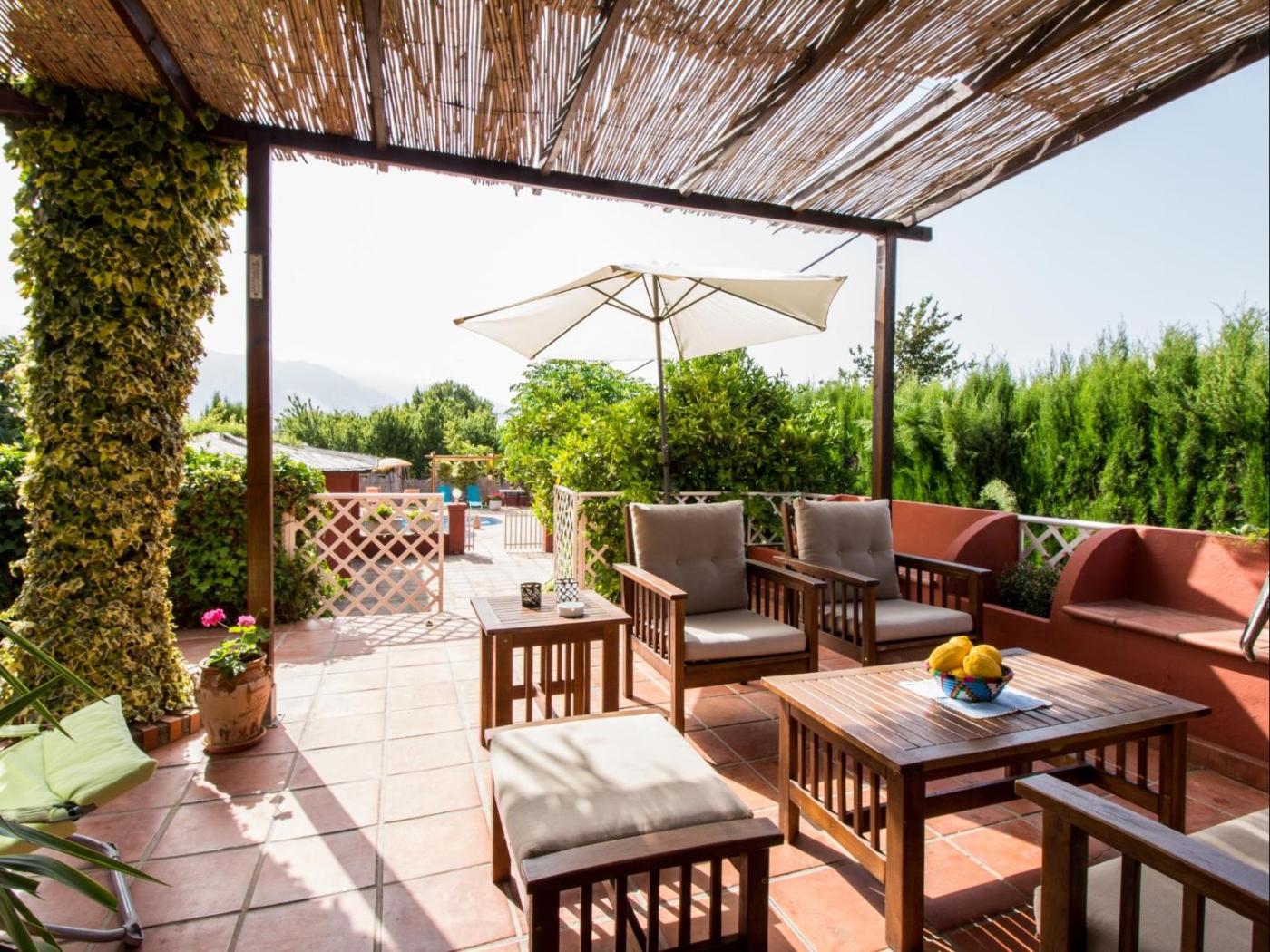 En Casa El Rosal Blanco, la clientela también puede usar la piscina al aire libre y la terraza.
