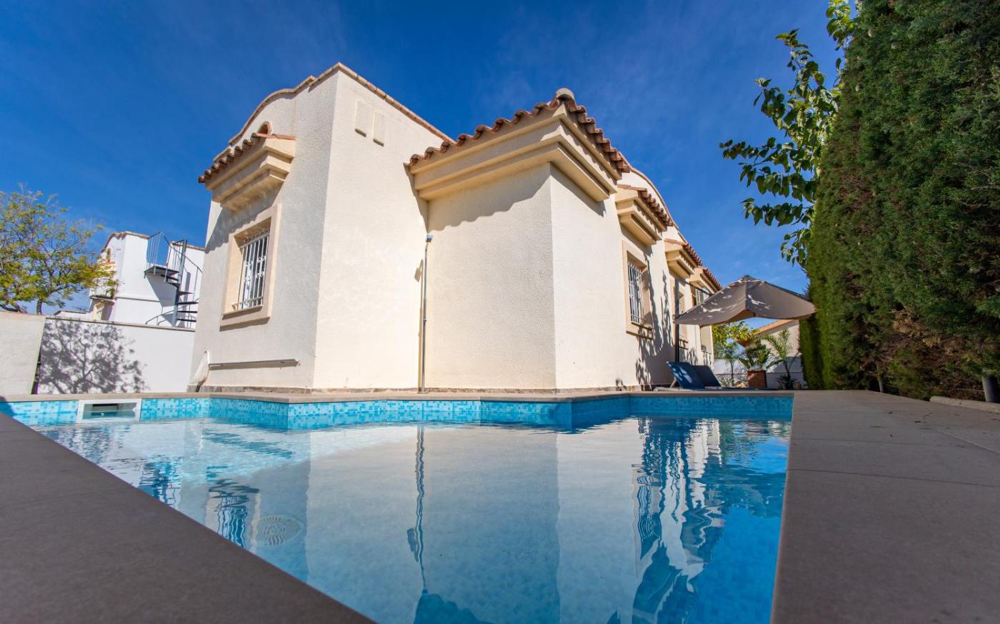 Esta casa o chalet con aire acondicionado consta de 2 dormitorios, una sala de estar, una cocina totalmente equipada con nevera y cafetera, y 1 baño con ducha y secador de pelo. Para mayor comodidad, el alojamiento puede ofrecer toallas y ropa de cama por un suplemento.